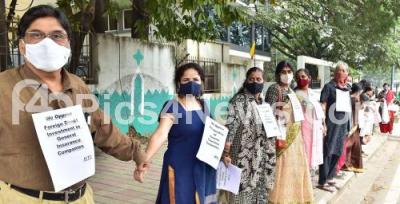 Photo Caption : Insurance employees form a Human Chain at Hudson Circle, in protest to fulfill their various demands, in Bengaluru on Wednesday 1st December 2021