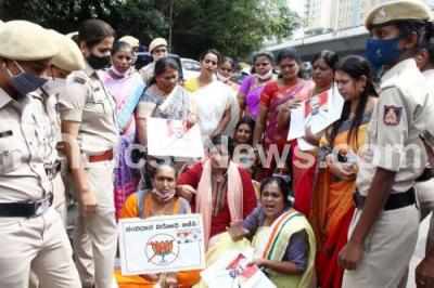 Photo Caption : Congress women workers protesting against BJP leader and Minister ST Somashekar for his statement on KGF Babu family, in Bengaluru on Thursday 2nd December 2021