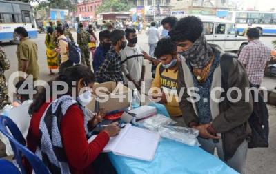 Photo Caption : Registration desk for COVID 19 swab tests at KR Market, amid ongoing Coronavirus pandemic, in Bengaluru on Thursday 2nd December 2021
