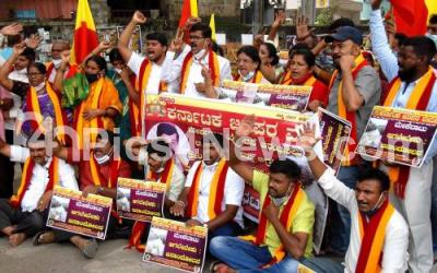 Photo Caption : Members of Karnataka Janapara Vedike participated in a protest for Mekedatu issue at SBM Circle, in Bengaluru on Friday 3rd December 2021