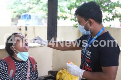Photo Caption : Health workers collect swab samples for COVID 19 tests at Government School, Nagarabhavi, amid ongoing Coronavirus pandemic, in Bengaluru on Friday 3rd December 2021