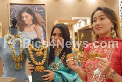 Models pose with jewellery during the Asia Jewels Fair at Taj vivanta, in Bengaluru on Saturday 4th December 2021