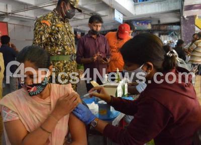 Photo Caption : A health worker administers a dose of the COVID-19 vaccine to a beneficiary at KR Market, as vaccination drives have been intensified after 2 cases of Omicron Coronavirus variants were found , in Bengaluru on Saturday 4th December 2021