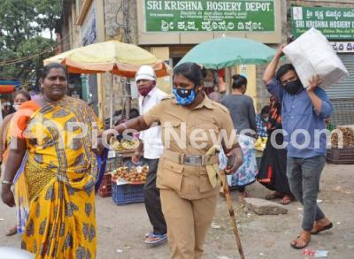 Photo Caption : BBMP Marshals and Police personnel impose fine on public at KR Market, who were found not wearing masks amid Coronavirus pandemic, in Bengaluru on Saturday 4th December 2021