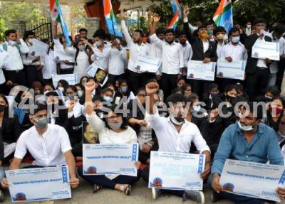 Photo Caption : Members of NSUI staged a protest against the Vice Chancellor Ishwara Bhat, in Bengaluru on Thursday 9th December 2021