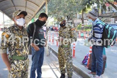 Event Description : BBMP Marshals and police impose fine on public at City Railway station, who were found not wearing masks amid Coronavirus pandemic, in Bengaluru on Friday 10th December 2021