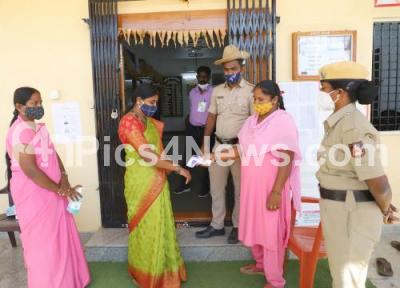 Photo Caption : Gram panchayat members underwent temperature check before voting at Sulikere Gram Panchayath Election center during MLC election, in Bengaluru on Friday 10th December 2021