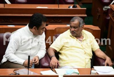 Photo Caption : Ministers Madhuswamy and Ashwath Narayan during the assembly session at Suvarna Soudha, in Belagavi on Tuesday 14th December 2021