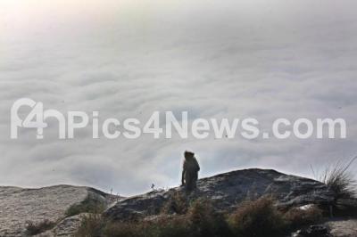 Photo Caption : Beautiful sunrise and below covered clouds a view top of the Nandi Hills, in Chikkaballapur on Tuesday 21st December 2021