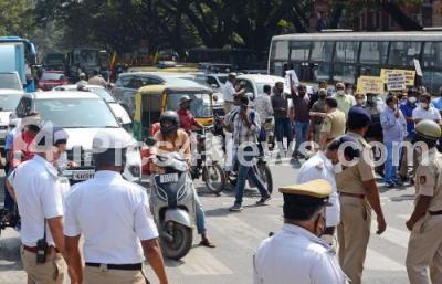 Event Description : Traffic Jam at KG Road during Christian community and Kannada activists protest rally, in Bengaluru on Wednesday 22nd December 2021