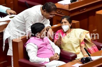 Photo Caption : Ministers R Ashoka, Murugesh Nirani and Shashikala Jolle seen during Council session at Suvarna Soudha , in Belagavi on Thursday 23rd December 2021