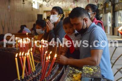 Photo Caption : Christians lighting candles during the Christmas Eve Mass prayers at St. Marys Basilica Church, amid coronavirus pandemic, in Bengaluru on Friday 24th December 2021