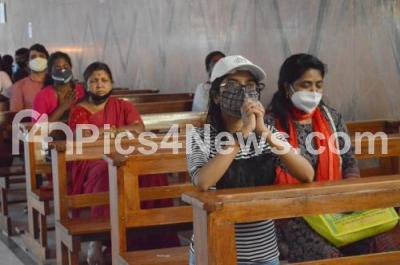Photo Caption : Christians seen praying during the Christmas Eve Mass prayers at St. Marys Basilica Church, amid coronavirus pandemic, in Bengaluru on Friday 24th December 2021