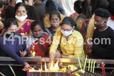 Photo Caption : Christians seen praying during the Mass prayer at St Marys Basilica Church in Shivajinagar, on the occasion of Christmas festival, in Bengaluru on Saturday 25th December 2021