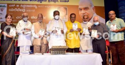 CLP Leader and Former CM Siddaramaiah presented Dr. MM Kalaburgi award to SG Siddaramaiah during a book release of "Yare Bevu" at Gandhi Bhavan, also seen are Music Director Hamsalekha, S Mahadevaiah, President, Basava International Foundation, Landon, Dr. MS Ashadevi , Dr. K Marulasiddappa and others, in Bengaluru on Sunday 26th December 2021