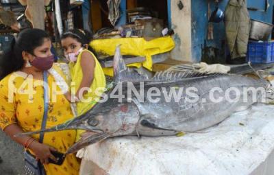 Big fishes on display at Cox Town market, in Bengaluru on Saturday 1st January 2022