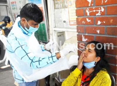 Photo Caption : Health workers collect swab samples for COVID 19 tests at Bengaluru City Railway station, amid Omicron Coronavirus pandemic, in Bengaluru on Sunday 2nd January 2022