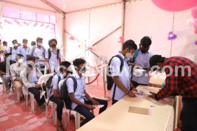 Students register themselves during vaccination camp at a government school, during a vaccination drive for people in the 15 to18 years age group, in Bengaluru on Tuesday 4th January 2022