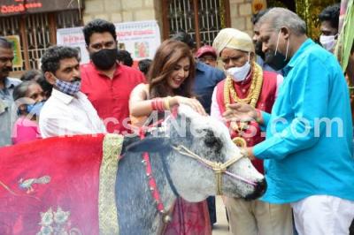 Event Description : Actress Priyanka Chincholi with Social Worker Bangarada Manushya Lakshminarayan and NS Ravi celebrated Sankranthi festival and distributed free Sesame, Jaggery to the BBMP workers at Cox town, in Bengaluru on Thursday 13th January 2022