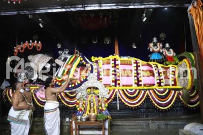 Photo Caption : Priest performing puja at Venkateshwara Temple, on the occasion of Vykunta Ekadashi festival, amid ongoing Coronavirus pandemic, in Bengaluru on Thursday 13th January 2022