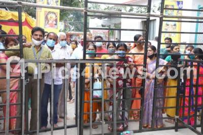 Photo Caption : Temple entrance closed due to COVID-19 guidelines at Venkateshwara Temple, amid ongoing Coronavirus pandemic, on the occasion of Vykunta Ekadashi festival, in Bengaluru on Thursday 13th January 2022