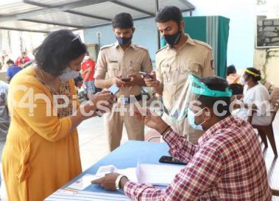 Photo Caption : Health care workers, frontline workers register themselves at Mallathalli Government primary hospital, during Vaccination drive for the third dose or precautionary dose to priority groups, health care workers, frontline workers and those aged above 60 years, in Bengaluru on Friday 14th January 2022