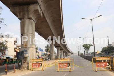Photo Caption : Deserted at Nyandanahalli circle during the state-wide weekend lockdown in the wake of the Coronavirus Pandemic, in Bengaluru on Sunday 16th January 2022