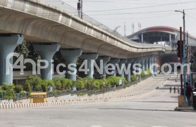 Photo Caption : Deserted MG Road during the state-wide weekend lockdown in the wake of the Coronavirus Pandemic, in Bengaluru on Sunday 16th January 2022