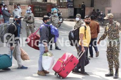 Photo Caption : BBMP Marshals and police impose fine on public at Majestic, who were found not wearing masks amid Coronavirus pandemic, in Bengaluru on Wednesday 19th January 2022