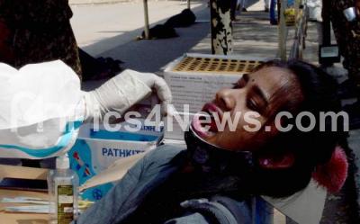 Photo Caption : Health workers collect swab samples for COVID 19 tests at Railway Station, amid ongoing Coronavirus pandemic, in Bengaluru on Thursday 20th January 2022