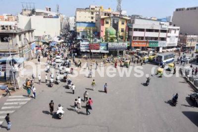 Photo Caption : A view of Market and Avenue road after the Weekend lockdown was lifted, amid ongoing Coronavirus pandemic, in Bengaluru on Saturday 22nd January 2022