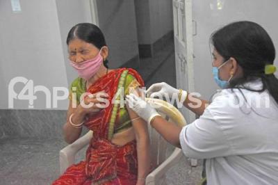 Photo Caption : A health worker administers a booster dose of COVID-19 vaccine to beneficiaries at Dasappa hospital, during booster dose Vaccination drive to priority groups, health care workers, frontline workers and those aged above 60 years, in Bengaluru on Saturday 22nd January 2022