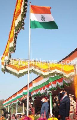 Photo Caption : Governor of Karnataka Thawar Chand Gehlot hoisting the Indian tricolor National flag during 73rd Republic Day celebrations at Manekshaw Parade Grounds, in Bengaluru on Wednesday 26th January 2022