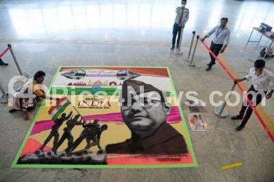 Photo Caption : An artist giving final touches to an art work on the occasion of 73rd Republic Day celebrations at Kempegowda Metro Station, in Bengaluru on Wednesday 26th January 2022