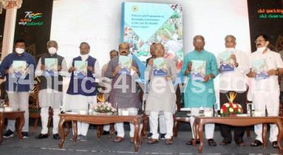 Photo Caption : Chief Minister of Karnataka Basavaraj Bommai with Ministers release a book to highlight the achievements of his government on the completion of six month at Vidhana Soudha, in Bengaluru on Friday 28th January 2022