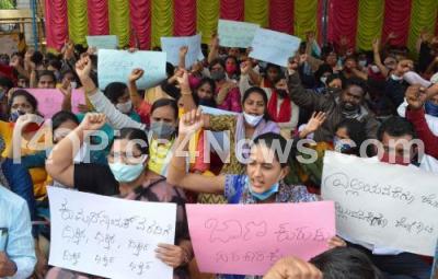 Guest Lecturers protest to fulfill their various demands at Maurya Circle, in Bengaluru on Saturday 29th January 2022