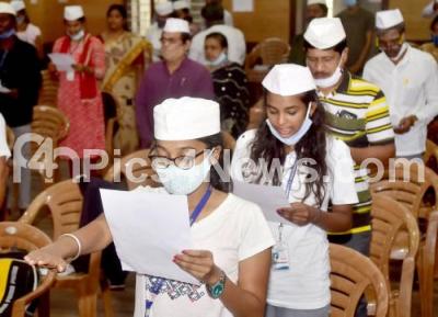 Photo Caption : Volunteers take oath during Health awareness program as part of Martyrs Day observed on the death anniversary of Mahatma Gandhi at Gandhi Bhavan, in Bengaluru on Sunday 30th January 2022