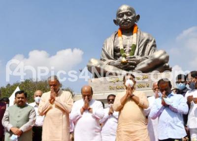 Event Description : Chief Minister of Karnataka Basavaraj Bommai with Minister R Ashoka, Speaker Vishweshwar Hegde Kageri and others paid tribute to Mahatma Gandhi on Martyrs Day observed on the death anniversary of Mahatma Gandhi at Vidhana Soudha, in Bengaluru on Sunday 30th January 2022