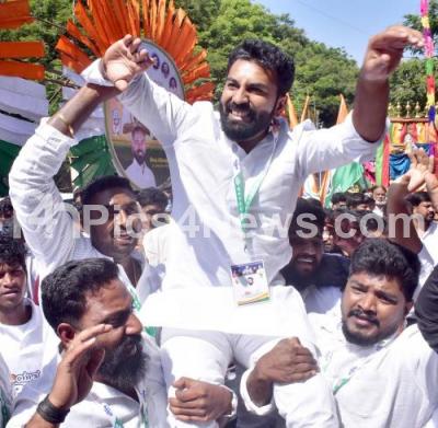 Photo Caption : Mohammed Haris Nalapad with his supporters before swearing in ceremony as the as the President of Karnataka Youth Congress, in Bengaluru on Thursday 10th February 2022