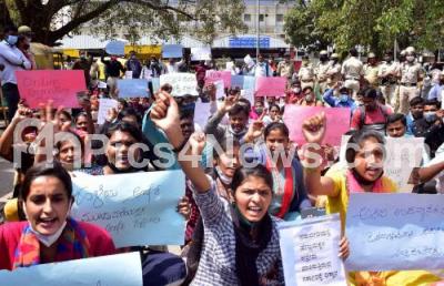 Members of Guest lecturers participated in a protest rally from City Railway station to fulfill their various demands, in Bengaluru on Monday 14th February 2022