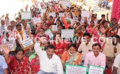 Members of Karnataka State Unaided School College Administrative Board and Workers Union participated in "Namma Kannada Shale Ulisi" (Save our Kannada School) Campaign at Freedom Park, in Bengaluru on Tuesday 15th February 2022