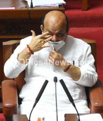 Photo Caption : Chief Minister Basavaraj Bommai during a Council session at Vidhana Soudha, in Bengaluru on Thursday 17th February 2022