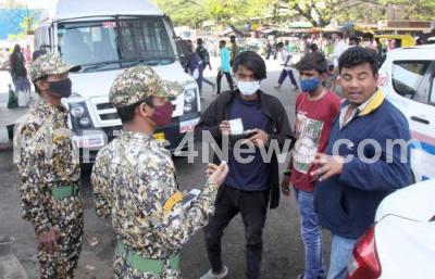 Photo Caption : BBMP Marshals impose fine on public at KR Market, who were found not wearing masks amid Coronavirus pandemic, in Bengaluru on Saturday 19th February 2022