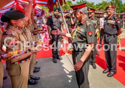 Photo Caption : General M M Naravane, Chief of the Army Staff during the Presidents Colours program at Parachute Regiment Training Center (PRTC), in Bengaluru on Wednesday 23rd February 2022