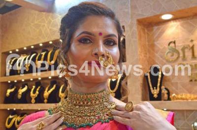 Photo Caption : A model display jewelry at Asia Jewels show at a private hotel, in Bengaluru on Friday 25th February 2022