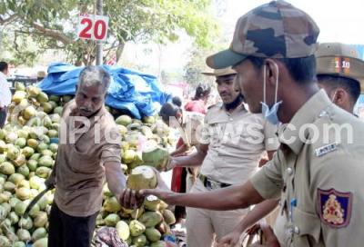 Police personnel seen drinking tender Coconut to quench their thirst in this scorching heat, in Bengaluru on Friday 25th February 2022
