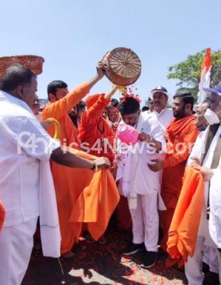 Photo Caption : Dr. Sri Shivamurthy Murugha Sharanaru blessed to KPCC President DK Shivakumar during 2nd of the 2.0 padayatra from Mekedatu to Bengaluru to demand the implementation of Mekedatu project, in Bidadi on Monday 28th February 2022
