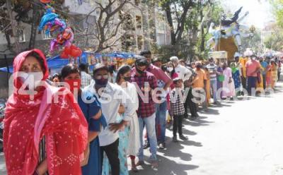 Devotees standing in a line at Kaadu Malleswaram Temple, on the occasion of Maha Shivaratri Festival, in Bengaluru on Tuesday 1st March 2022