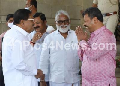 Photo Caption : Former DCM and Congress MLA Dr. G Parameshwara and BJP MLA Renukacharya arriving during budget for the Year 2022-23 at Vidhana Soudha, in Bengaluru on Friday 4th March 2022