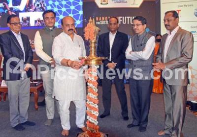 Photo Caption : Chief Minister of Karnataka Basavaraj S. Bommai lighting the lamp to inaugurate Bengaluru India Nano 2022, also seen are Minister Ashwath Narayan, Prof. S Swaminathan, SASTRA Deemed University India and others, in Bengaluru on Monday 7th March 2022